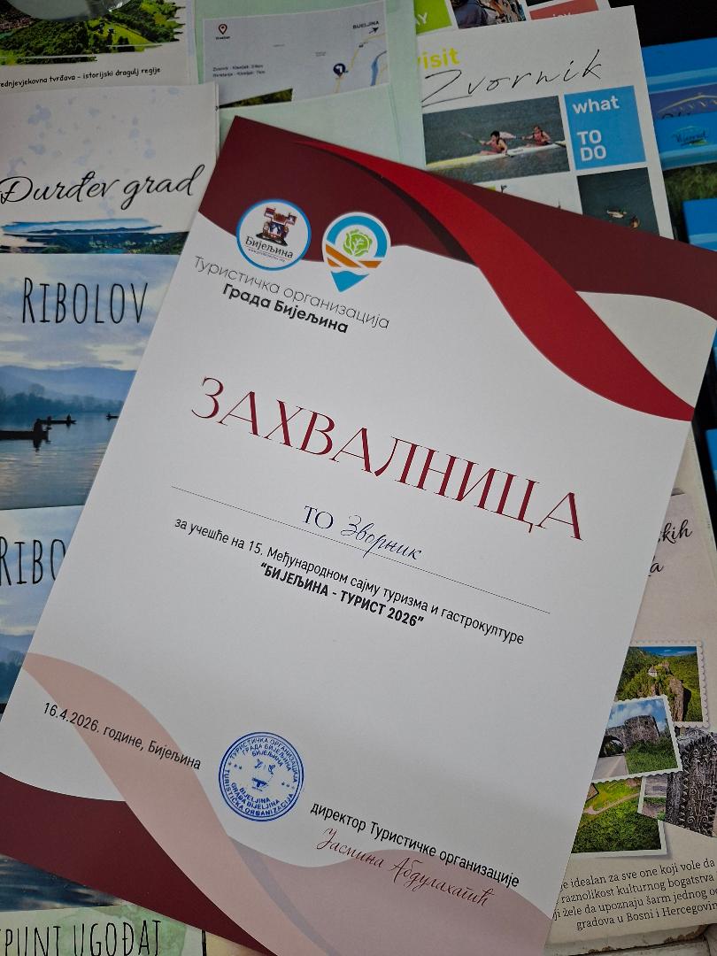 Turistička organizacija grada Zvornika je uzela učešće na 15.Međunarodnom sajmu turizma i gastrokulture “Bijeljina-turist 2026” u Bijeljini. Na tradicionalnoj manifestaciji se predstavilo preko 70 učesnika iz sfere turizma, a sajam je otvorio uz govor dobrodošlice pomoćnik ministra trgovine i turizma Predrag Tešić.