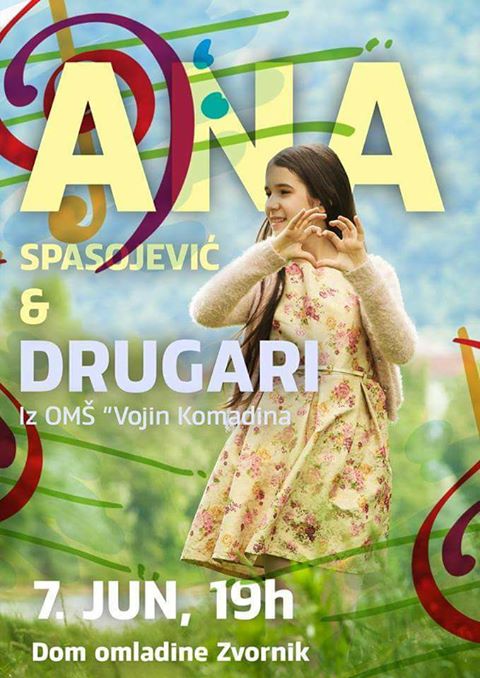 Ana Spasojević i drugari iz OMŠ “Vojin Komadina” nastupaju u Domu omladine 07. juna u 19h.